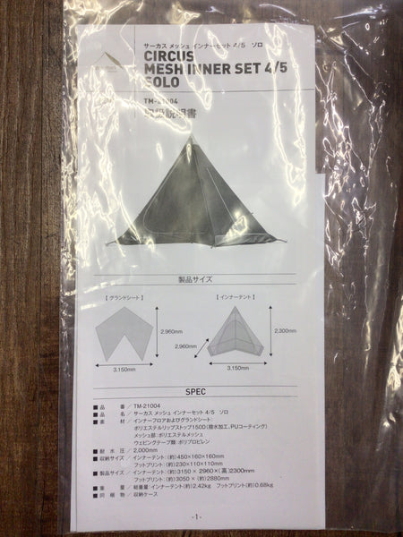 サーカステントのコンフォートソロ用、テンマクデザインの純正インナーテントセットです!