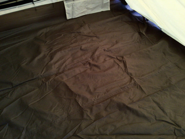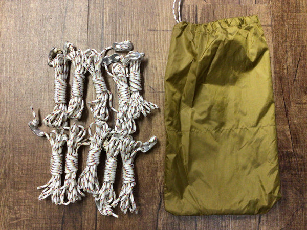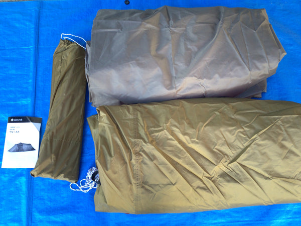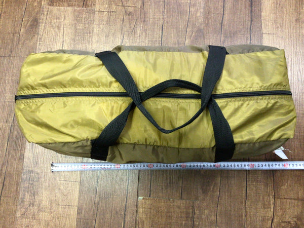 - 構成品:インナーテント、フライシート、ポール一式、リペアポール、張綱16本(内6本は本体に取付済)、取扱説明書、インナーマット、グランドシート ※ペグ28本は全紛失。インナーマットとグランドシートは本来別売オプション
